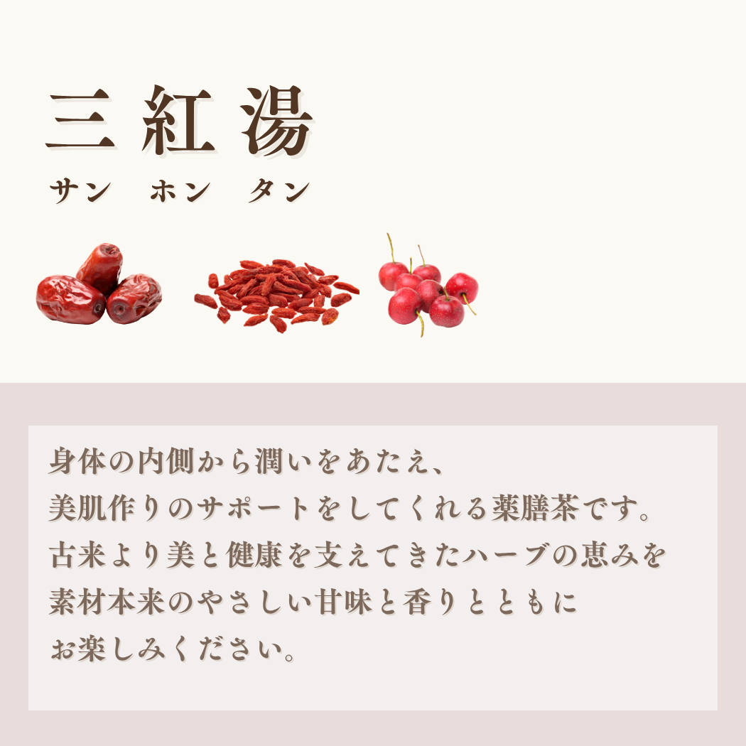 「三紅湯」は、美肌を目指す方に最適な無添加の美容茶です。